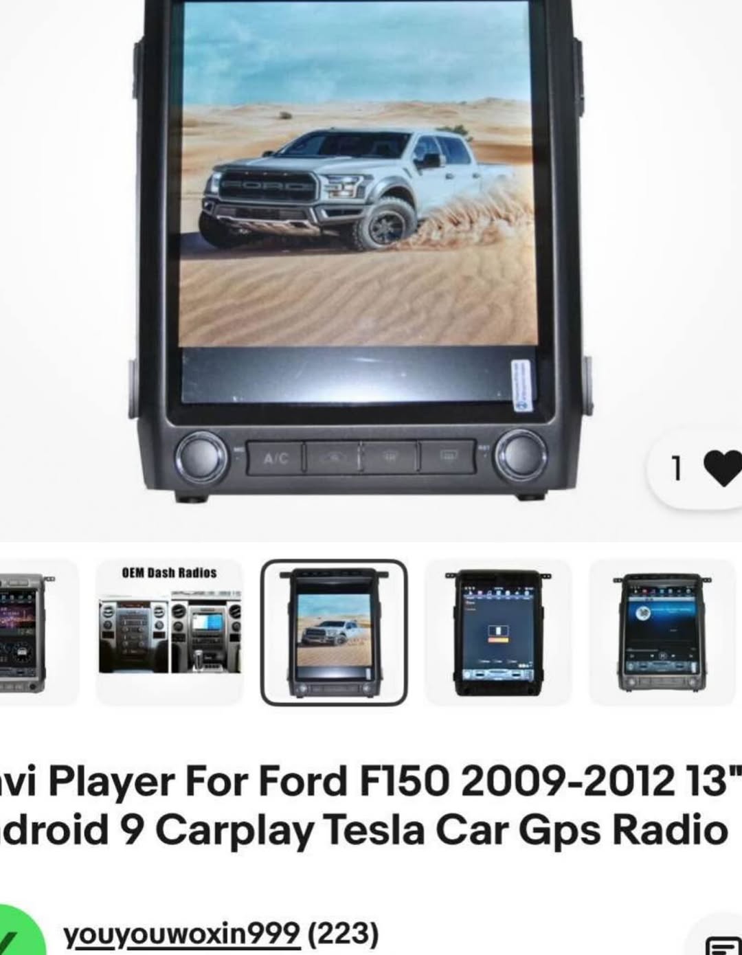 New Vertical Tesla-Style Screen for 2009–2014 Ford F-150. Comes complete with radio module and adapters. $500
